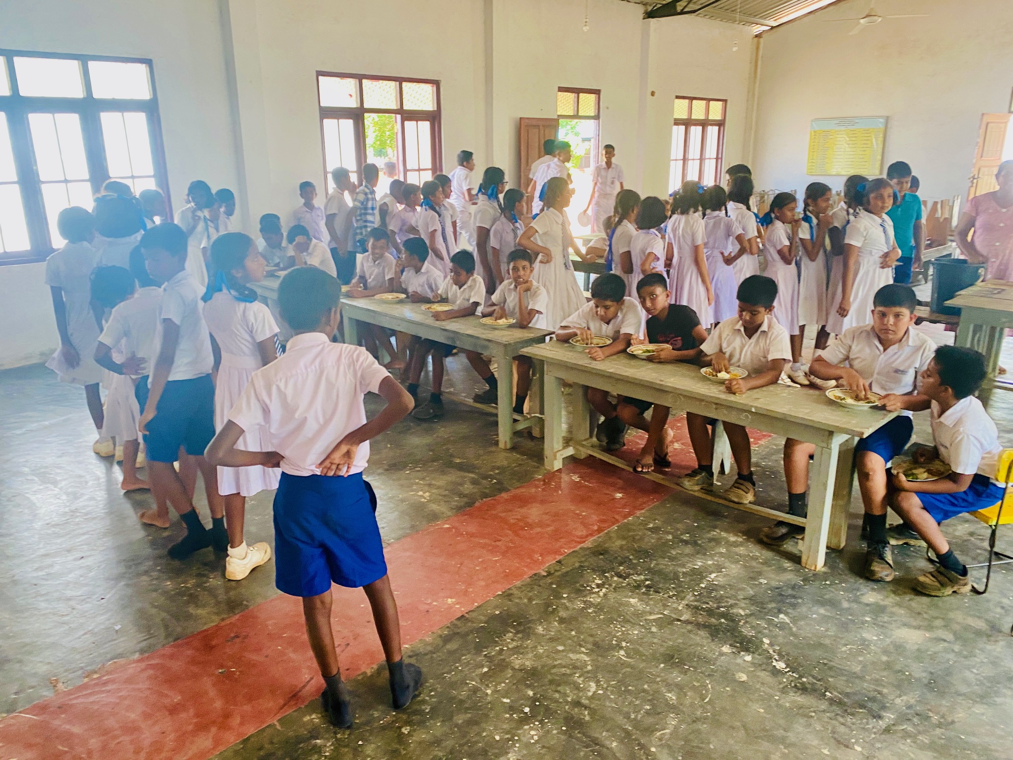 After seeing the above article in the Daily Mirror, we started giving a nourishing lunch for the 50 students who are in our leadership training group in Padaviya. These students come to our 2 pm computer classes, direct from school without having their lunch. Also, we added another 30 most needy students to this programme, from the school just opposite our training centre. We give a nourishing plate of rice with three vegetables, and fish, or an egg. We hope that we will be able to increase the number of students in the future according to the donations that we receive from our donors.